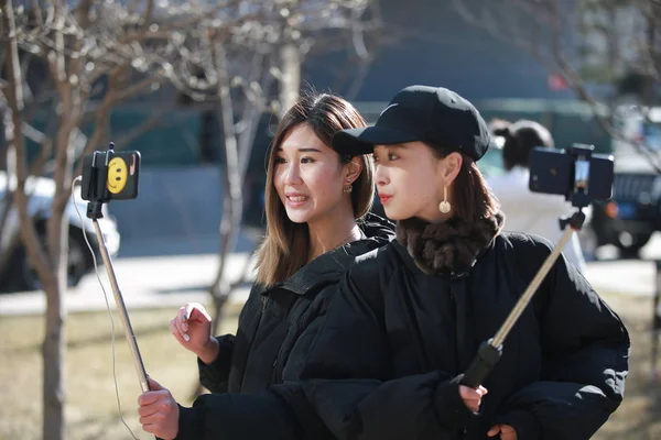 Beijing China 17th Oct 2015 Actors Huang Bo C And Liu Yifei L Take Selfies During A Celebration In Beijing Film Academy In Beijing China Oct 17 2015 Beijing Film Academy On Saturday